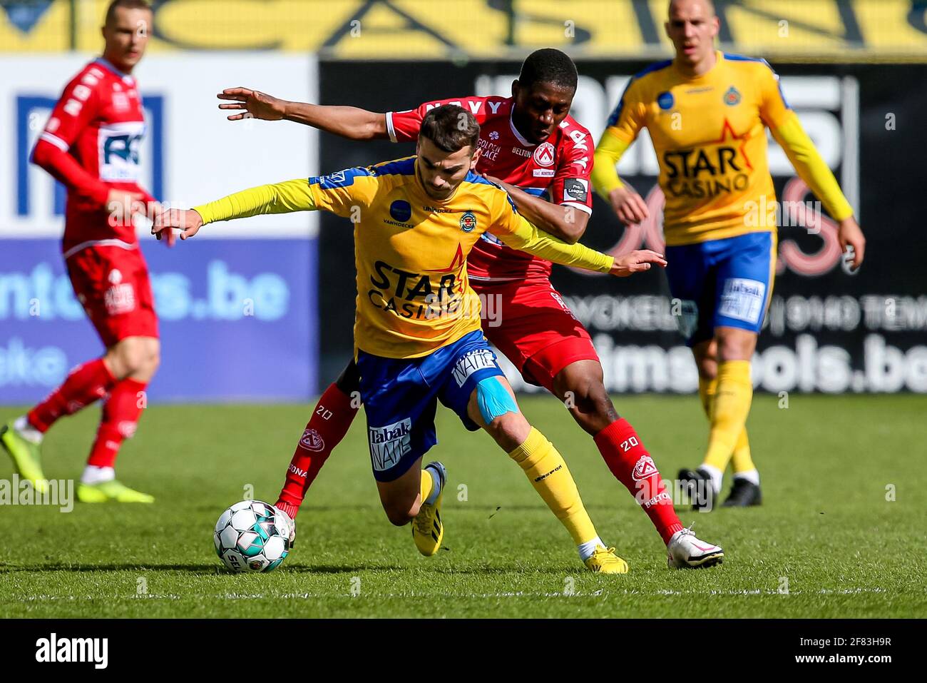 Beveren Netherlands April 11 Danel Sinani Of Waasland Beveren Sambou Sissoko Of Kv Kortrijk During The Pro League Match Between Waasland Beveren Stock Photo Alamy
