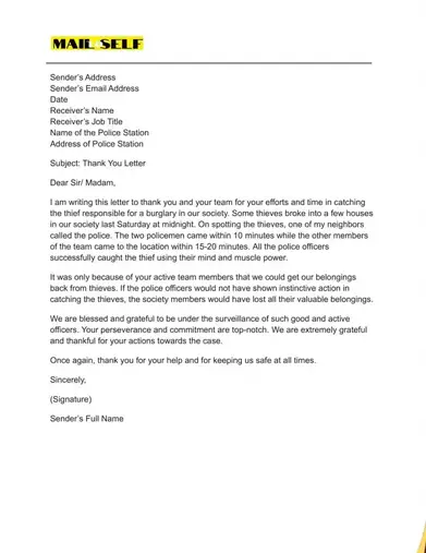 Thank You Letter To Police Officer How To Templates Examples Mail To Self